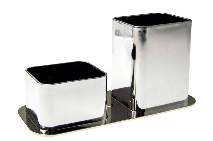 PORTA CANETAS DUPLO METAL PRATA
